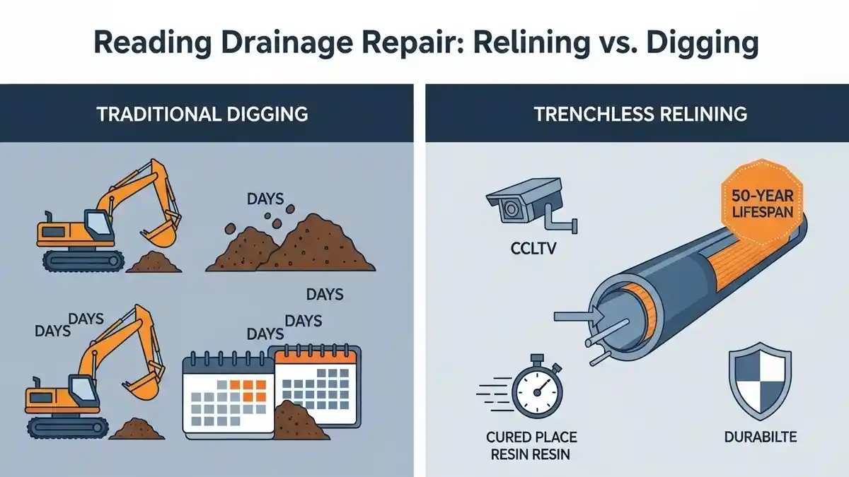 Avoid costly, messy excavations. Compare Amersham Drain Relining vs Digging to save your home, time, and money with our expert, minimally invasive, and durable no-dig repair solutions for local drains.